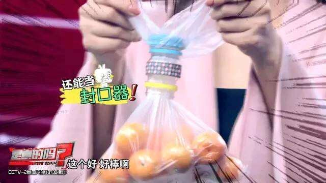 女嘉宾的方法是先将两个饮料瓶的瓶底切下来,然后在瓶子切口的边缘外侧涂一圈热熔胶,再将拉链分别黏在两个瓶子的切口处外侧,再拉上拉链,一个便携的收纳盒就做好了。