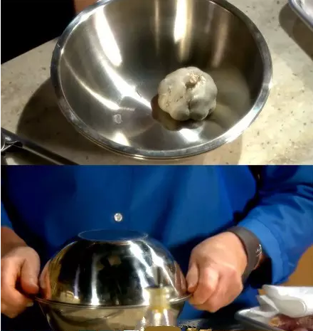 另一个碗倒扣在大蒜碗上