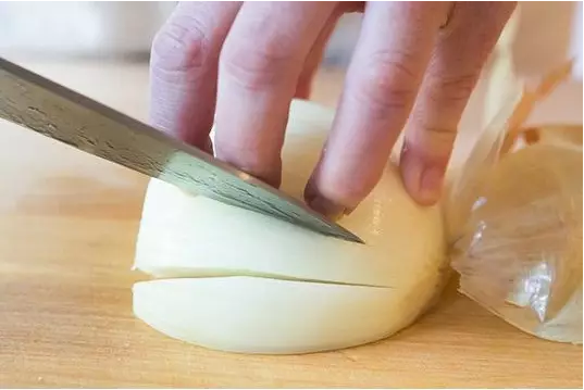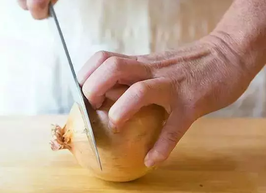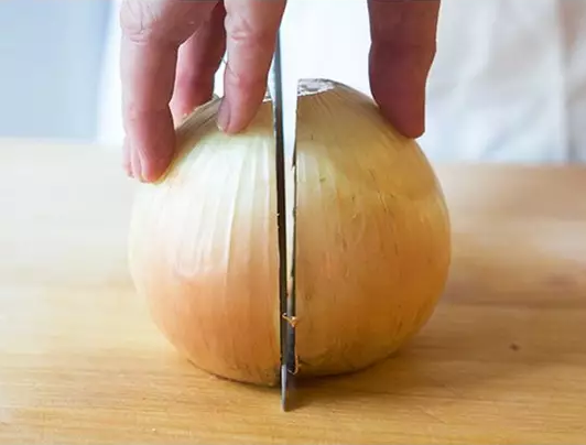 再从洋葱头一刀切下来